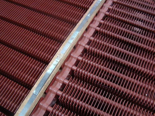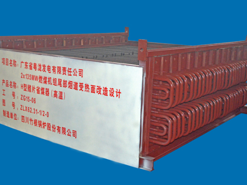 順列布置的H鰭片省煤器具有更大的表面積,使省煤器空間極為緊湊鰭片管的擴展受熱面積可以達到光管的5~7倍。鰭片自然形成通道,不僅使省煤器不易積灰和沾污,而且使省煤器的煙氣阻力大大降低。煙氣分布均勻,受煙氣沖刷鰭片產(chǎn)生極輕微的煙氣擾動,避免了煙氣直接沖刷管子,使鰭片管具有優(yōu)異的抗磨損性能。